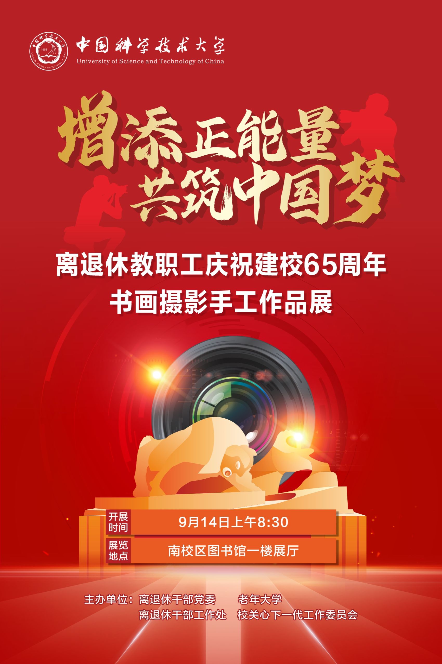 為慶祝中國共產黨成立102周年、中國科學技術大學建校65周年,離退休干部黨委、離退休干部工作處聯合老年大學、校關心下一代工作委員會舉辦“增添正能量 共筑中國夢”離退休教職工慶祝建校65周年書畫攝影手工作品展。廣大離退休教職工以靈動的筆觸和深厚的感情,把對黨對祖國對人民對科大的熱愛傾注于筆端,聚焦于鏡頭,匯集于手工,凝練于時空,在丹青翰墨和流年光影中展示時代韻律和銀發風采。